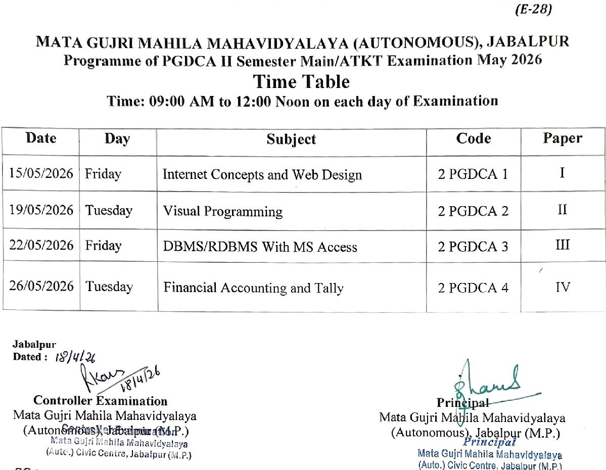 Time Table for PGDCA II Sem Exams May, 2026
